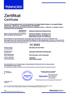 Zertifikat gemäß Richtlinie 2014/68/EU